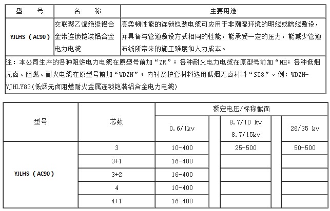 稀土铝合金连锁铠装电缆 YJLHS (AC90) 特性分析: